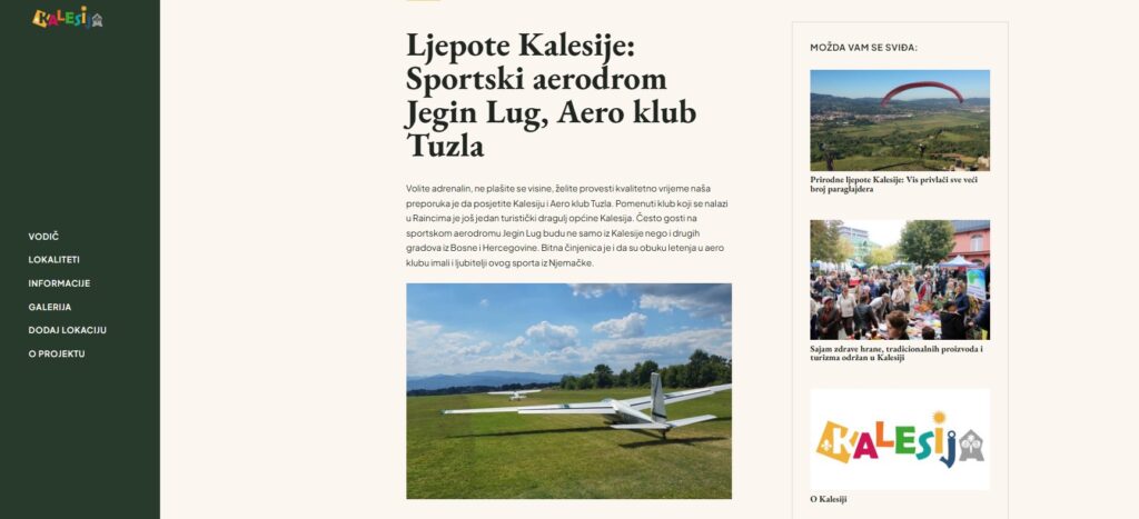 Web stranica www.turizamkalesija.ba predstavlja zvanični online vodič kroz turističke potencijale općine Kalesija i mjesto gdje se na jednom prostoru objedinjuju prirodne ljepote, kulturno-historijsko naslijeđe, lokalne manifestacije i autentične priče ovog kraja.