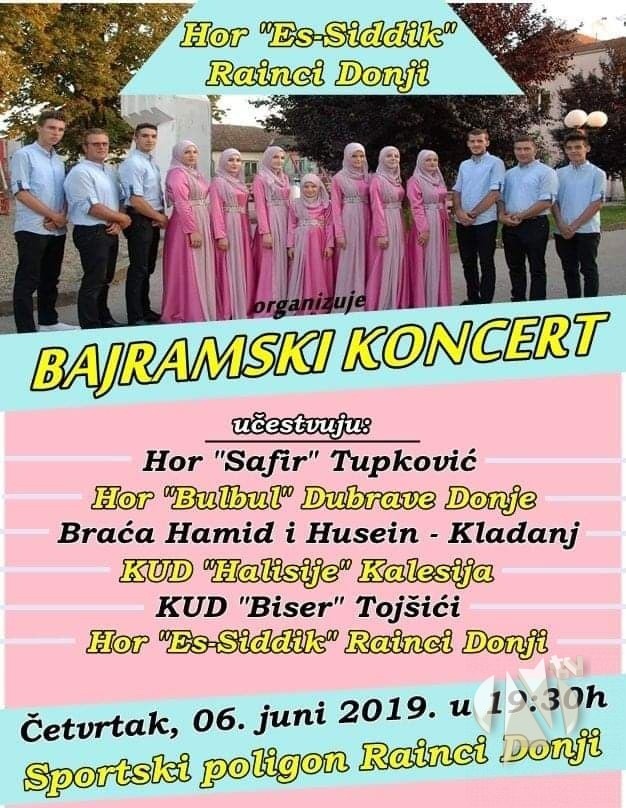 Učestvuju hor “Safir” Tupković, hor “Bulbul” Dubrave Donje i domaćin koncerta hor “Es-Siddik” Rainci Donji.