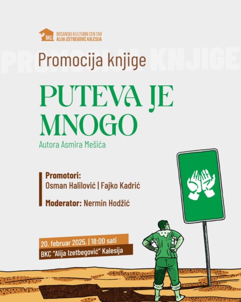 U sali JU BKC “Alija Izetbegović” Kalesija večeras će sa početkom u 18:00 sati bit će upriličena promocija knjige “Puteva je mnogo”, autora Asmira Mešića.