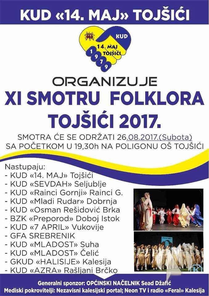 U organizaciji KUD “14. Maj” Tojšići, večeras sa početkom u 19:30 sati održat će se XI smotra folklora.