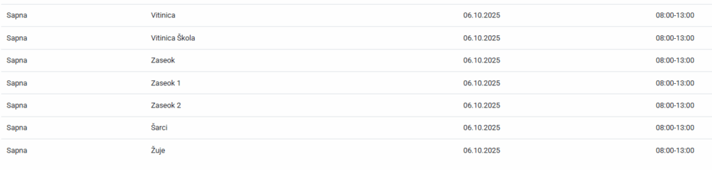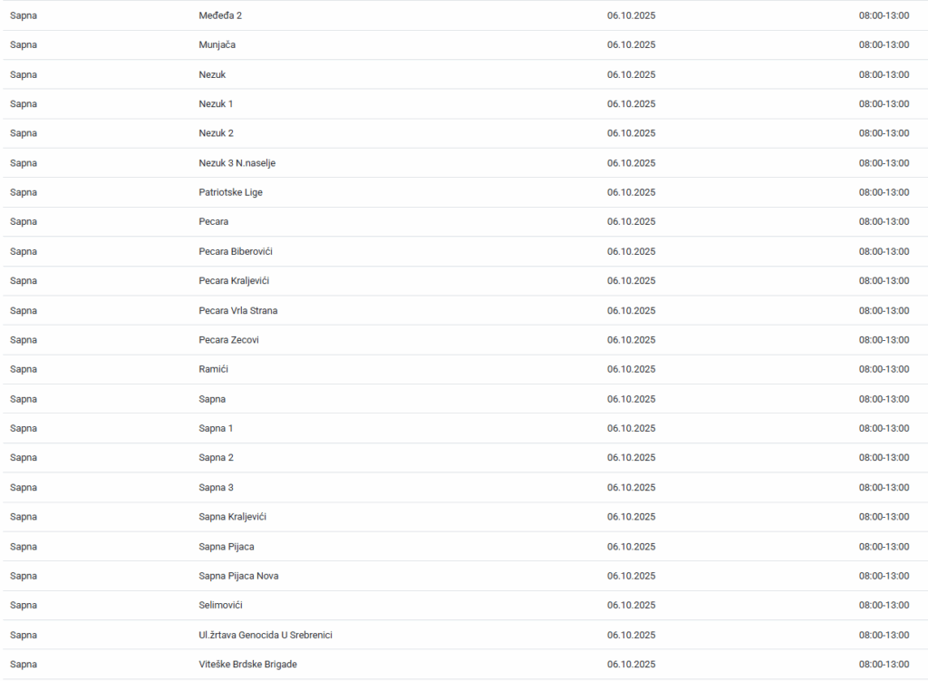 Veliki broj naselja na području Sapne u ponedjeljak (6. oktobar) će biti bez električne energije, saopćeno je iz Elektroprivrede Bosne i Hercegovine.