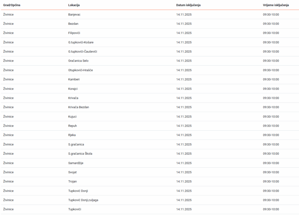 Veliki broj naselja na području Živinica danas će biti bez električne energije, saopćeno je iz Elektroprivrede Bosne i Hercegovine.