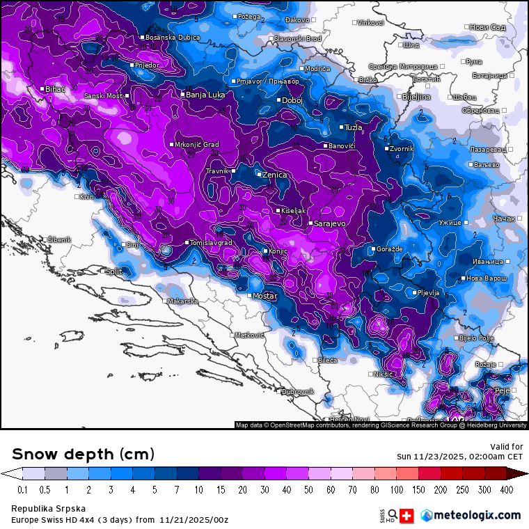 Vrijeme danas oblačno sa kišom i snijegom u Bosni