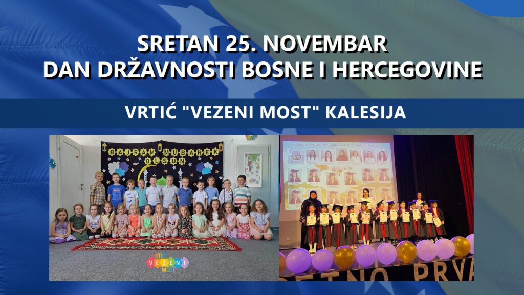 “S ponosom obilježimo današnji datum kojim je Bosna i Hercegovina još jednom potvrdila svoju državnost 25. novembra 1943. godine. Višestoljetna državnost Bosne i Hercegovine još jednom je potvrđena 25. novembra 1943. godine na zasjedanju ZAVNOBiH-a u Mrkonjić Gradu. Ovo je jedan od najznačajnijih dana u našoj historiji, kada je izražena odlučnost naroda Bosne i Hercegovine da njihova zemlja bude zajednica u kojoj će biti osigurana puna ravnopravnost svih, te potvrđen njen teritorijalni suverenitet, integritet i historijski kontinuitet. Svima nama, ali i budućim generacijama ostaje obaveza njenog očuvanja i njegovanja vrijednosti koje BiH baštini. Sretan Dan državnosti.”  Vrtić  “Vezeni most” Kalesija