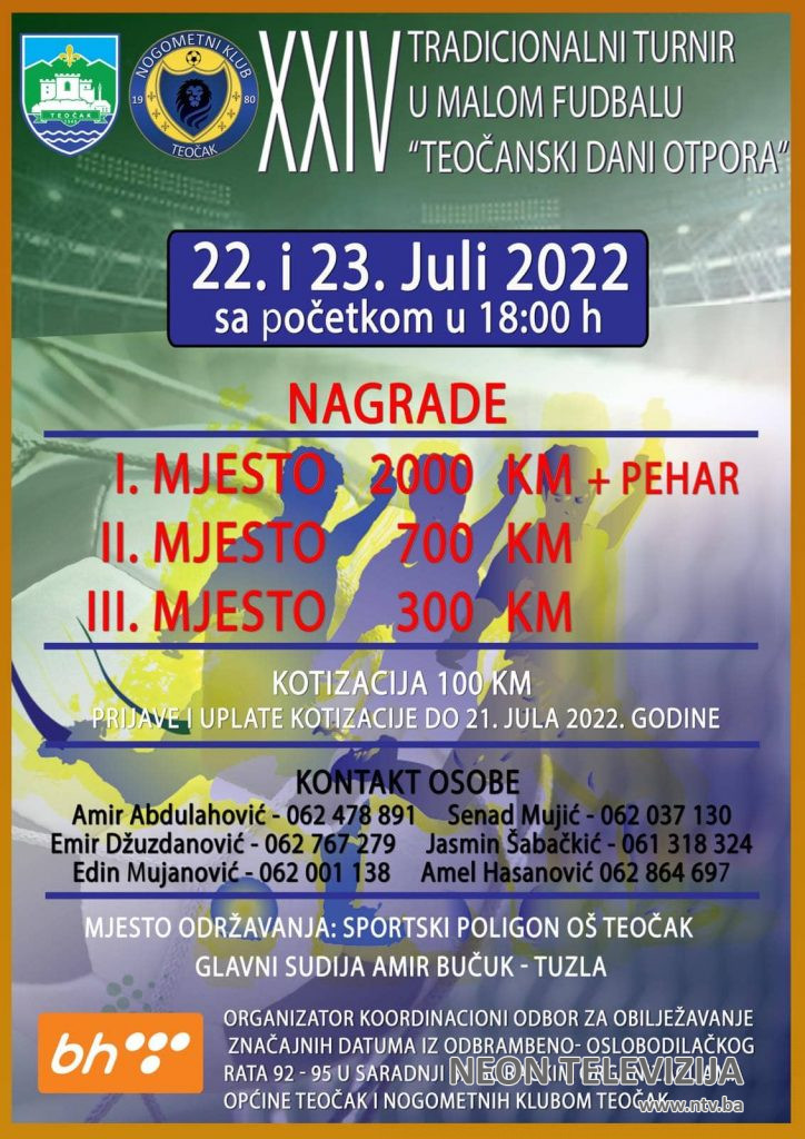 XXIV TURNIR U MALOM FUDBALU „TEOČANSKI DANI OTPORA“ 22. i 23.jula 2022. godine