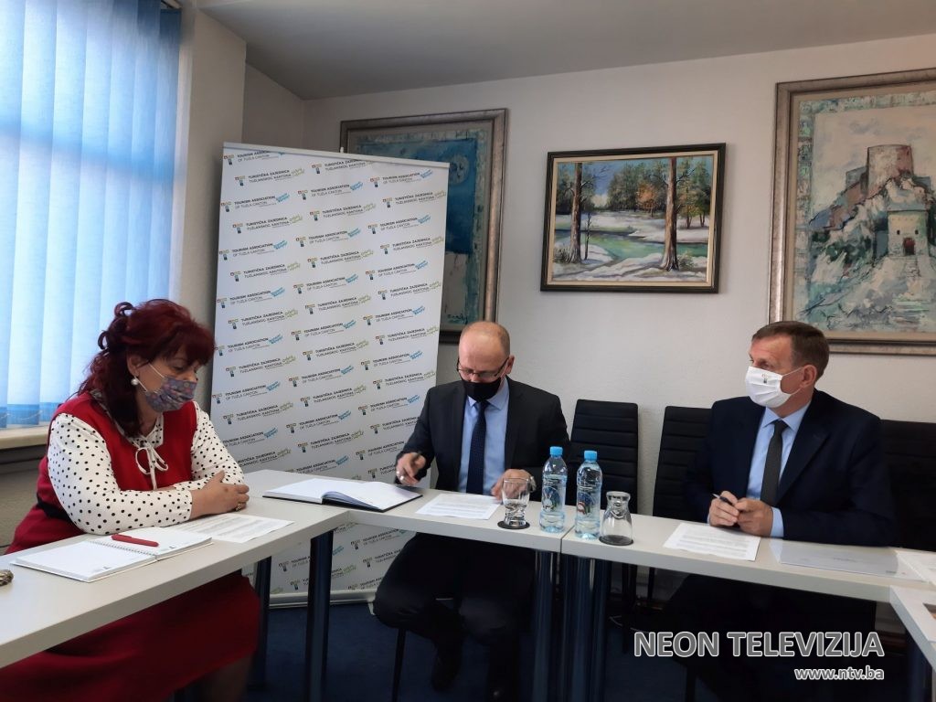 Javni poziv za sufinansiranje projekata u cilju podizanja kvaliteta Turističke ponude na području Tuzlanskog kantona bio je povod za današnji radni sastanak ministra trgovine, turizma i saobraćaja Hamze Bešića sa predsjednikom Turističke zajednice Tuzlanskog kantona Miralemom Meškovićem. Naime, Turistačka zajednica je uz podršku Kantonalnog ministarstva raspisala Javni poziv za sufinansiranje projekata odnosno dodjelu bespovratnih sredstava za infrastrukturne projekte od značaja za razvoj turizma i podizanje kvalitete turističke ponude Tuzlanskog kantona za 2021. godinu. Za ove namjene planirano je 200.000,00 KM.