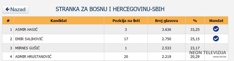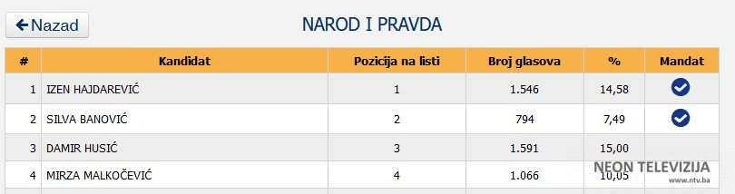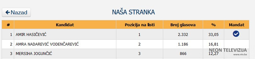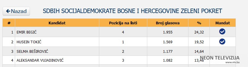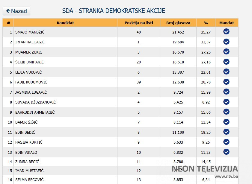 Na listi SDA našli su se još i Enes Idrizović sa osvojenih 5.658 glasova, Fadil Alić sa 4.635 i Memsud Mešanović sa 3.612 glasova koji im nisu bili dovoljni za osvajanje mandata.