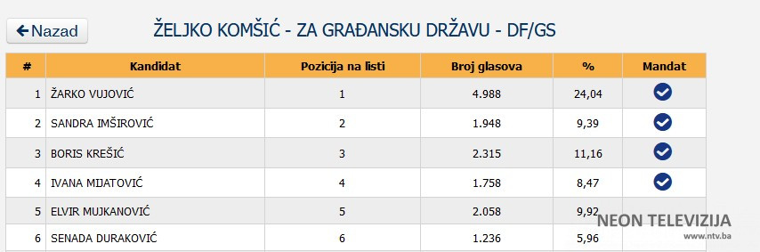 DF kao treća stranka u TK nisu imali kalesijaca na svojoj listi.