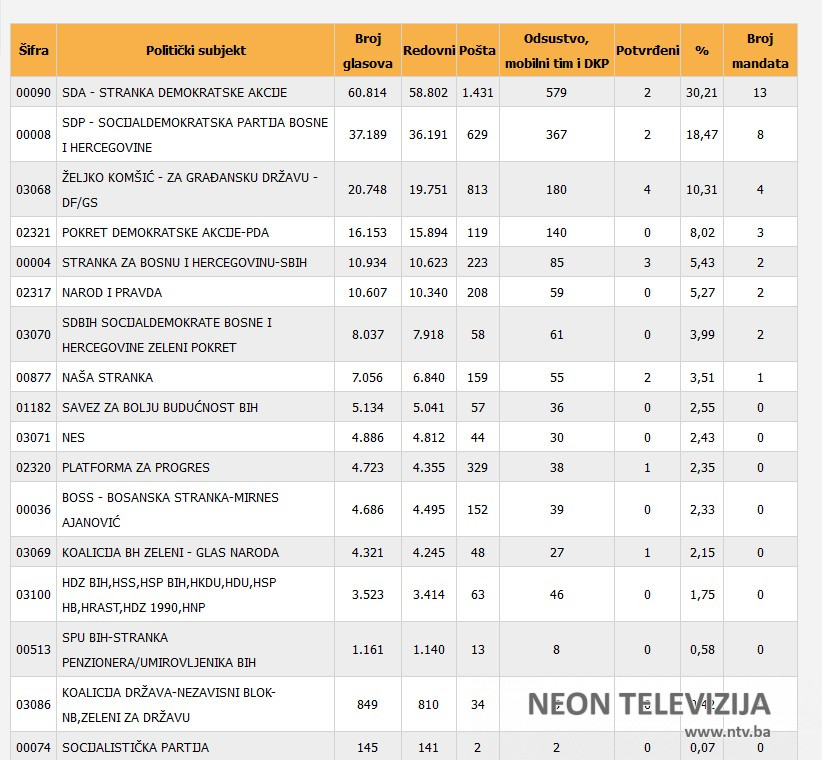 Radi se o utvrđenim rezultatima na koje postoji mogućnost žalbe a CIK će zvanične rezultate potvrditi do 02.11.2022.