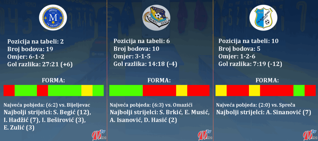 Memićani su ove jeseni bili 100-postotni na domaćem terenu – pet pobjeda iz pet susreta. Uz to su igrali solidno i na gostovanjima, gdje su ostvarili po jednu pobjedu i remi, te upisali dva poraza. Najefikasniju ekipu u prvom dijelu prvenstva predvodio je Sadik Begić, prvi strijelac lige sa 12 pogodaka. Podršku mu je pružao i Ibrahim Hadžić, koji je postigao 7 golova. Ukoliko na proljeće zadrže nivo igre iz prvog dijela, Memići su svakako jedan od kandidata za prvo mjesto.