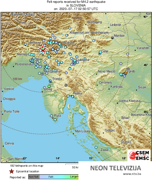 U jutarnjim satima jači zemljotres zabilježen je u Sloveniji. Izmjerena magnituda zemljotresa je 4,2 u blizini Kobarida ili Boveca, što je 79 kilometara od Ljubljane, podaci su Agencije za zaštitu okoliša Slovenije.