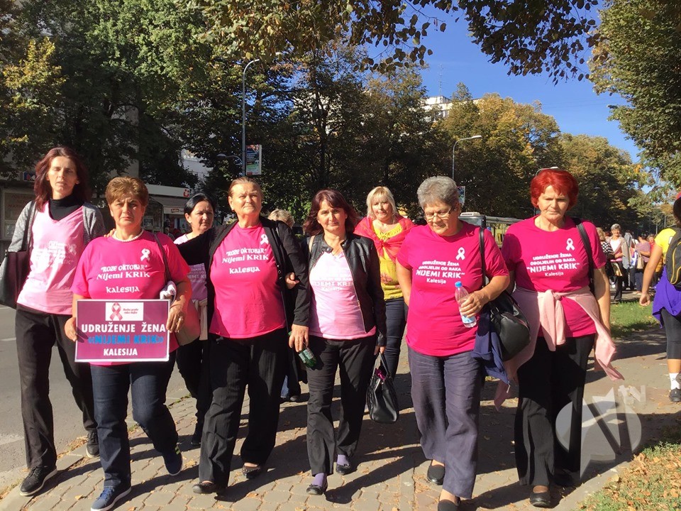 Članice Udruženja “Nijemi krik” će i u ponedjeljak mirnom šetnjom kroz Kalesiju pokušati uticati na svijest žena da idu na redovne preglede i vode računa o svom zdravlju. Dans učestvuju u mirnoj šetnji Udruženja “Iskra Savez žena” u Banja Luci čiji cilj je i isti, borba protiv karcinoma dojke.
