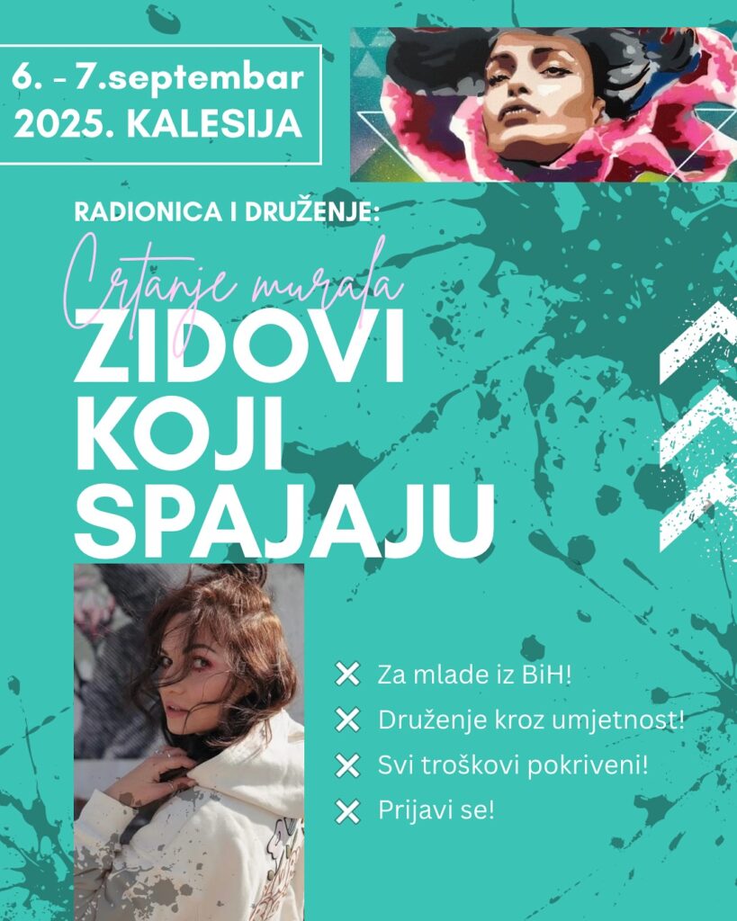 Omladinski resursni centar Tuzla (ORC Tuzla) poziva mlade iz cijele Bosne i Hercegovine da se prijave na dvodnevnu aktivnost crtanja murala u Kalesiji, koja će se održati 6. i 7. septembra 2025. godine.