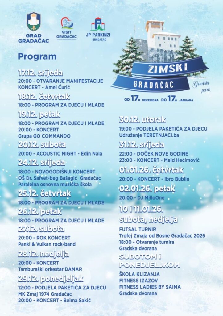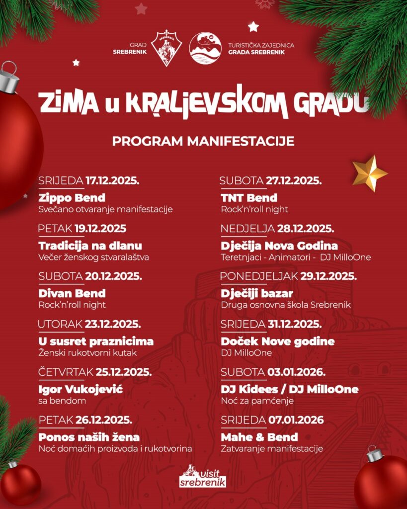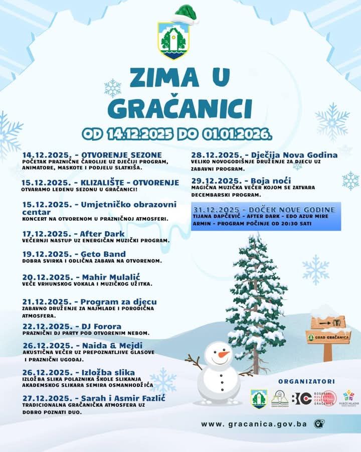 Tuzla godinama prednjači sa zimskom turističkom ponudom kroz tradicionalnu manifestaciju „Zima u Tuzli“, koja je praćena dočekom Nove godine na otvorenom uz velikane regionalne muzičke scene (Plavi orkestar, Crvena jabuka, Van Gogh…). Sve je bilo spremno za nešto slično i ove zime – Tuzlake je u 2026. godinu trebao uvesti Adi Šoše. No, usljed tragičnog događaja, požara u Domu penzionera i smrti 17 osoba, manifestacija „Zima u Tuzli“ i doček Nove godine na otvorenom su otkazani. Istini za volju, Udruženje obrtnika Tuzle organizovalo je manifestaciju „Zimska čarolija“, nešto skromniju od tradicionalne. Dodajmo ovome da je Grad Tuzla, u saradnji s lokalnom turističkom zajednicom, pripremio „Zimski dječiji program“ namijenjen najmlađima.