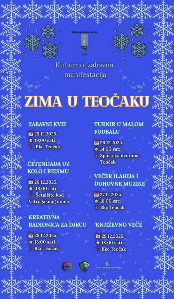 Ono što je posebno interesantno iz našeg ugla jeste manifestacija „Zima u Teočaku“. Ova simpatična manifestacija trajat će pet dana, a bit će kombinacija zabavnog, sportskog, kulturnog i vjerskog programa.