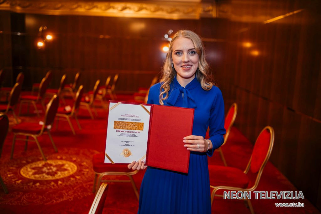 Dobitnica je priznanja Zlatna plaketa – Student Generacije, Univerziteta u Tuzli, uz prosječnu ocjenu na kraju studiranja 9,81.Također, dobitnik je nagrade najboljim studentima, Vlade Federacije BiH. A dodjela nagrada će se održati u utorak, u Sarajevu, u sjedištu Vlade Federacije Bosne i Hercegovine.