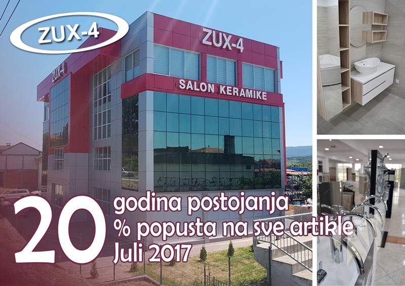 DOO “ZUX-4” Kalesija u četvrtak 20-og jula 2017. godine obilježava 20 godina postojanja salona keramike u centru Kalesije.